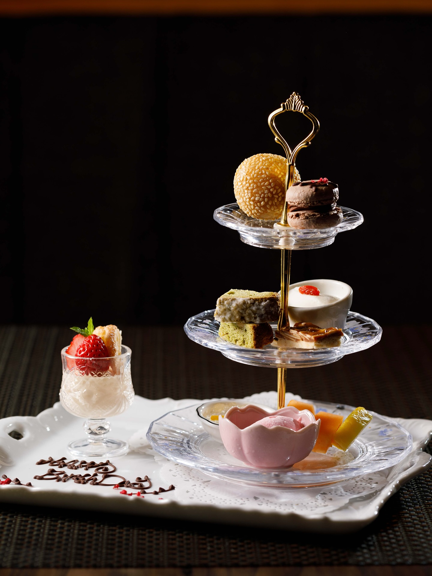 上品に盛りつけられた数種のスイーツと薫り高い中国茶で極上のひとときをゆったりとお過ごしください。