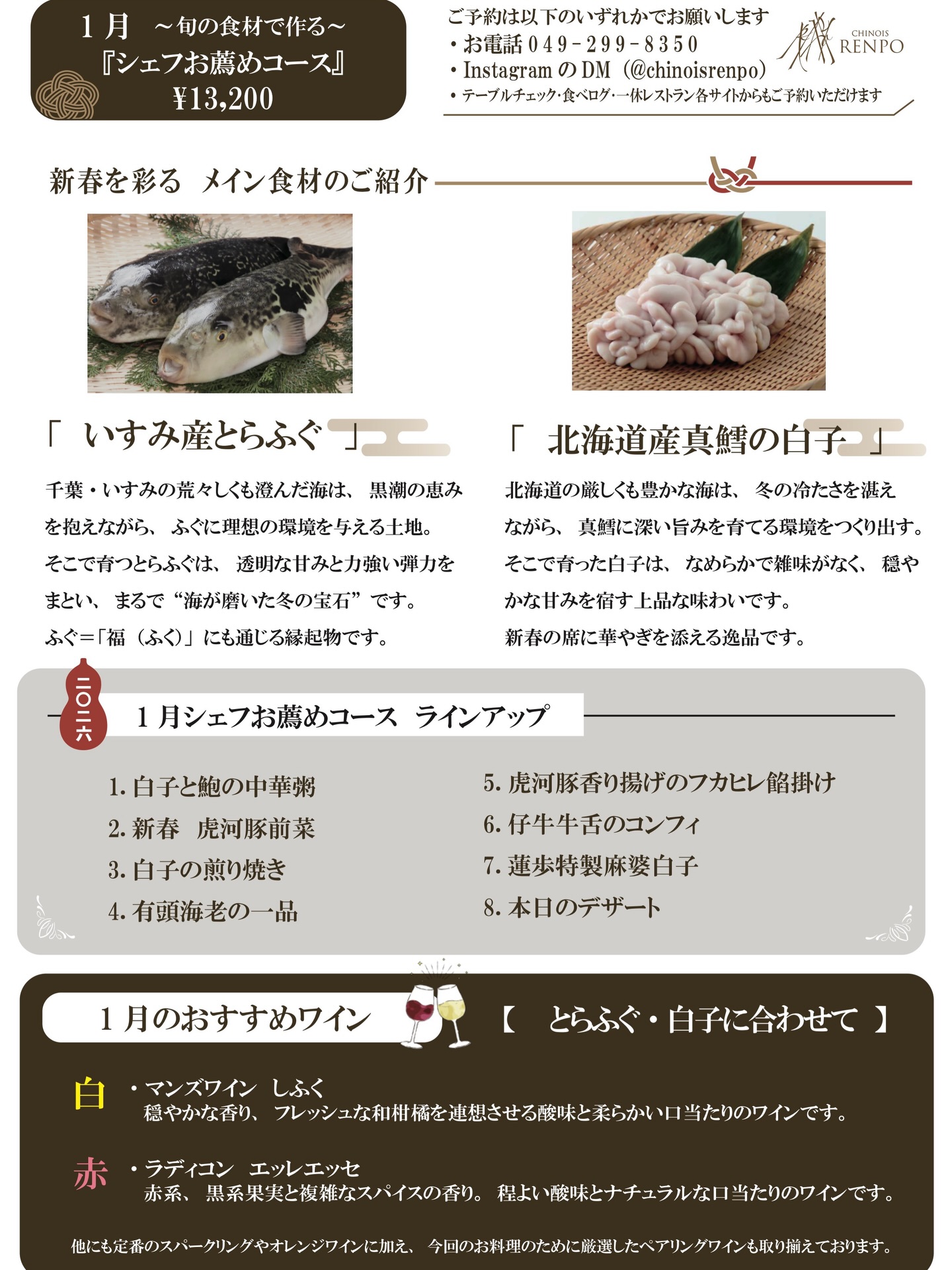 2026年の1月 “シェフのお薦めコース”は、、、